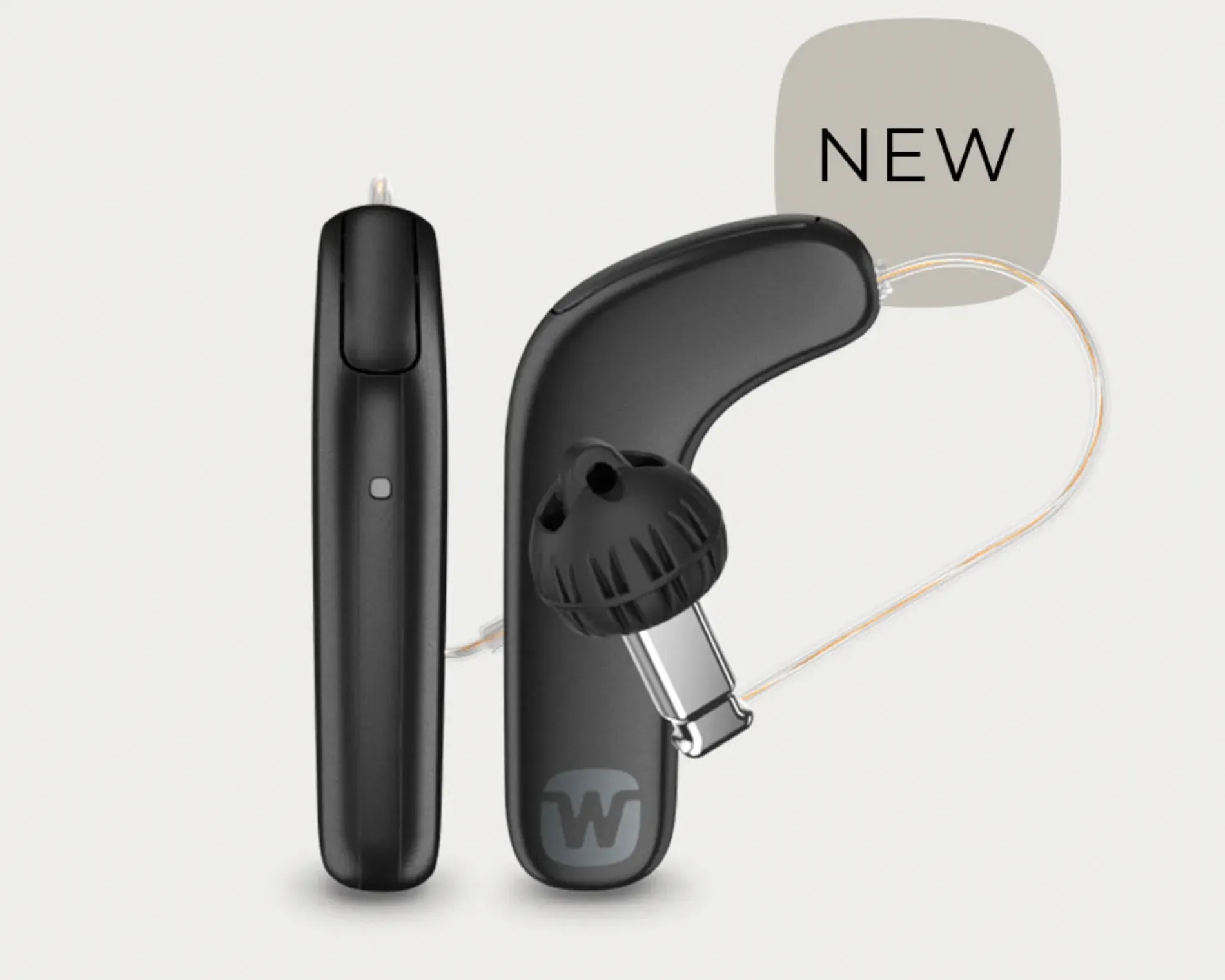 It is built in a special L-shape and sits higher on your ear, helping you hear conversations even when it is noisy around you.